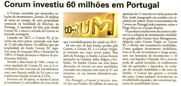 Criado em 2017, o Corum XL investe em imóveis de diferentes tipologias dentro e fora da zona euro..